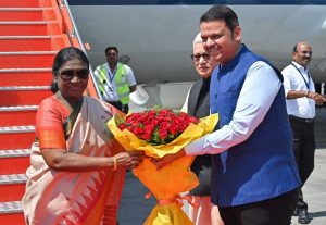 नागपूर (प्रतिनिधी) — भारताच्या राष्ट्रपती द्रौपदी मुर्मू यांचे आज नागपूर येथे आगमन झाले. त्यांच्या स्वागतासाठी महाराष्ट्राचे राज्यपाल जिष्णू देव वर्मा तसेच मुख्यमंत्री देवेंद्र फडणवीस उपस्थित होते. त्यांनी राष्ट्रपतींचे स्नेहपूर्वक स्वागत केले.